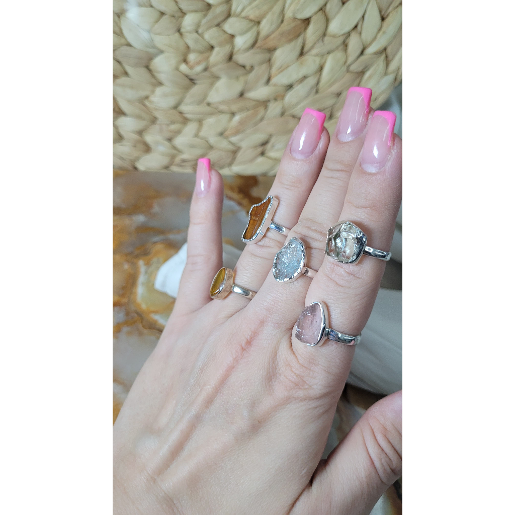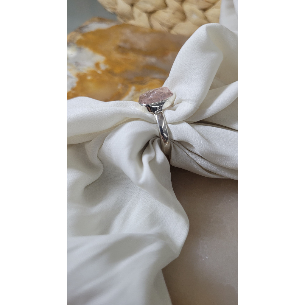 Anel Morganita Prata 925 Amuleto Pedras Naturais Cristais